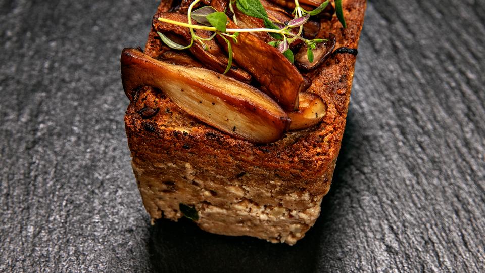 Smørrebrød med bagt selleri, brunet smør med hasselnødder og estragon.